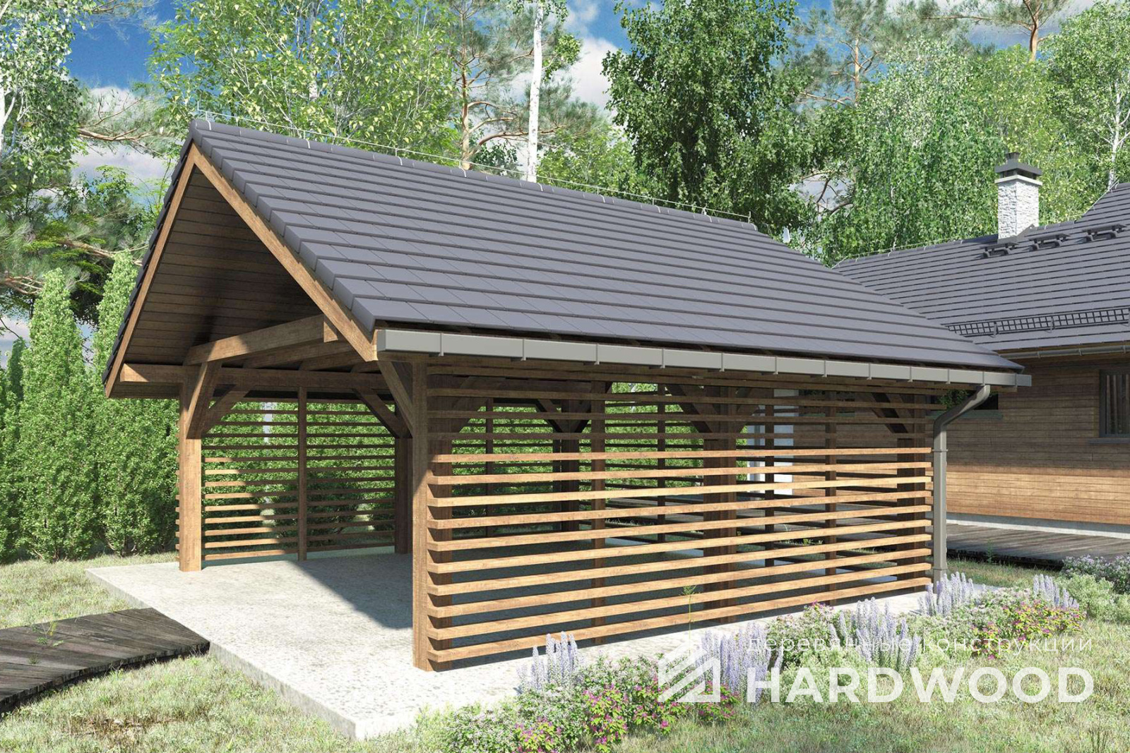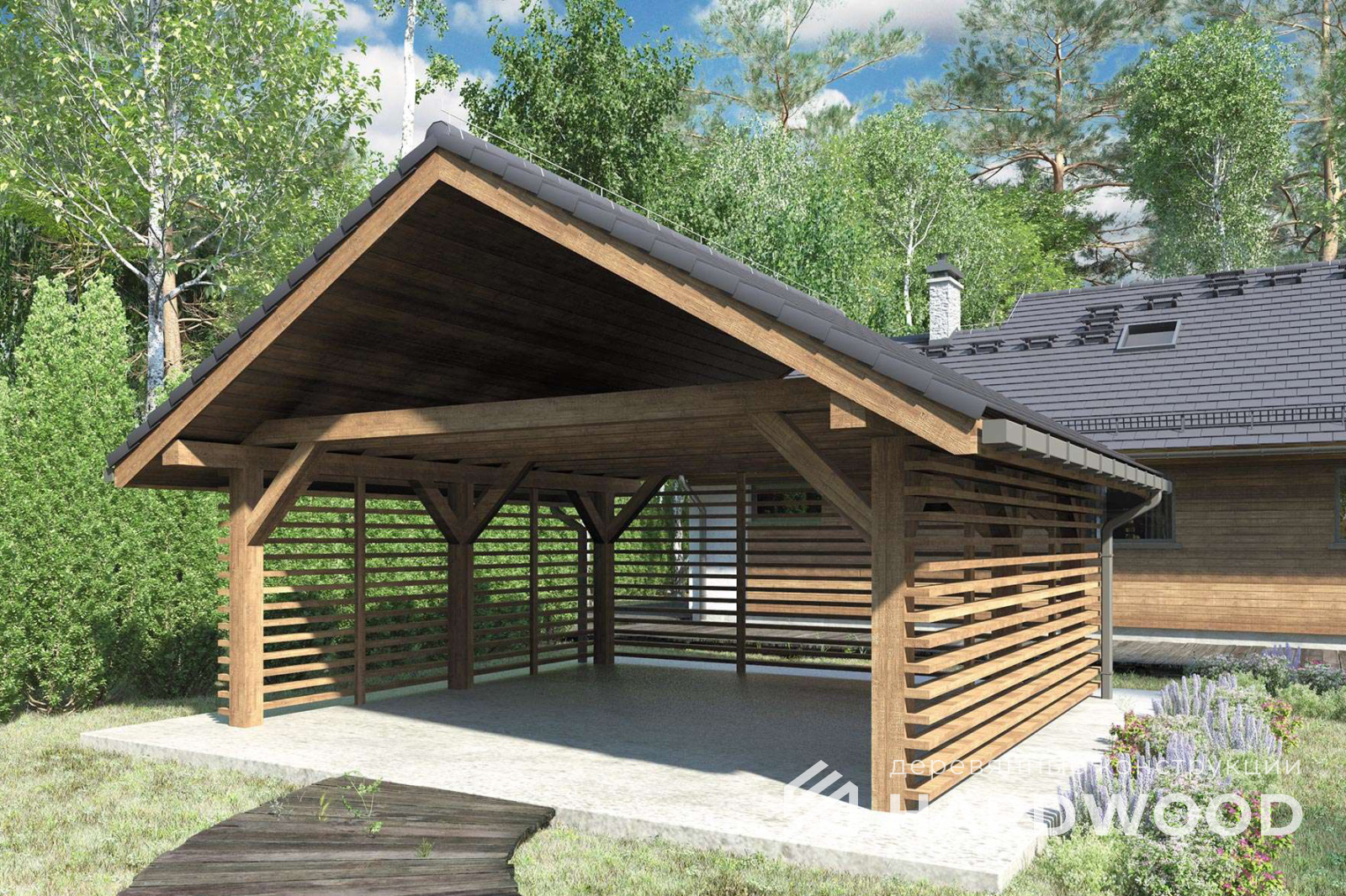 Деревянные навесы для автомобилей по акции